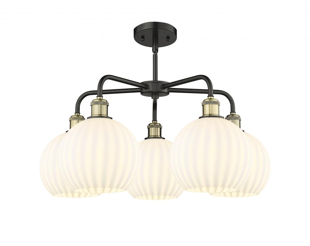 White Venetian - 5 Light - 26 inch - Black Antique Brass - White Venetian Shade - Chandelier