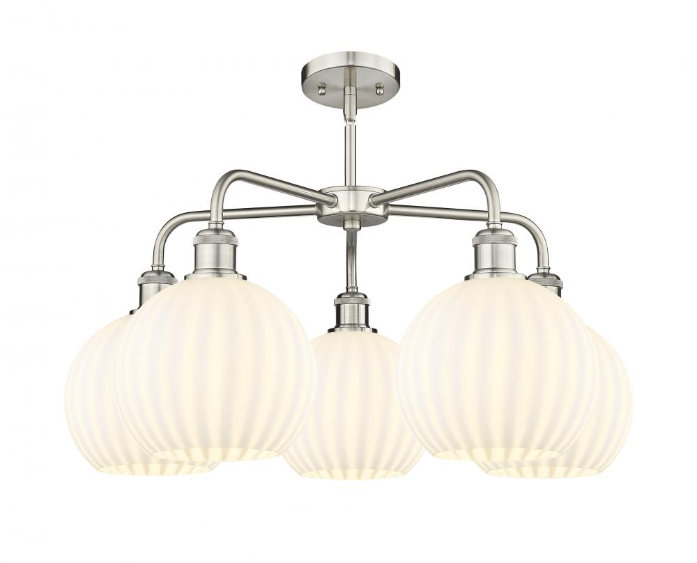 White Venetian - 5 Light - 26 inch - Satin Nickel - White Venetian Shade - Chandelier