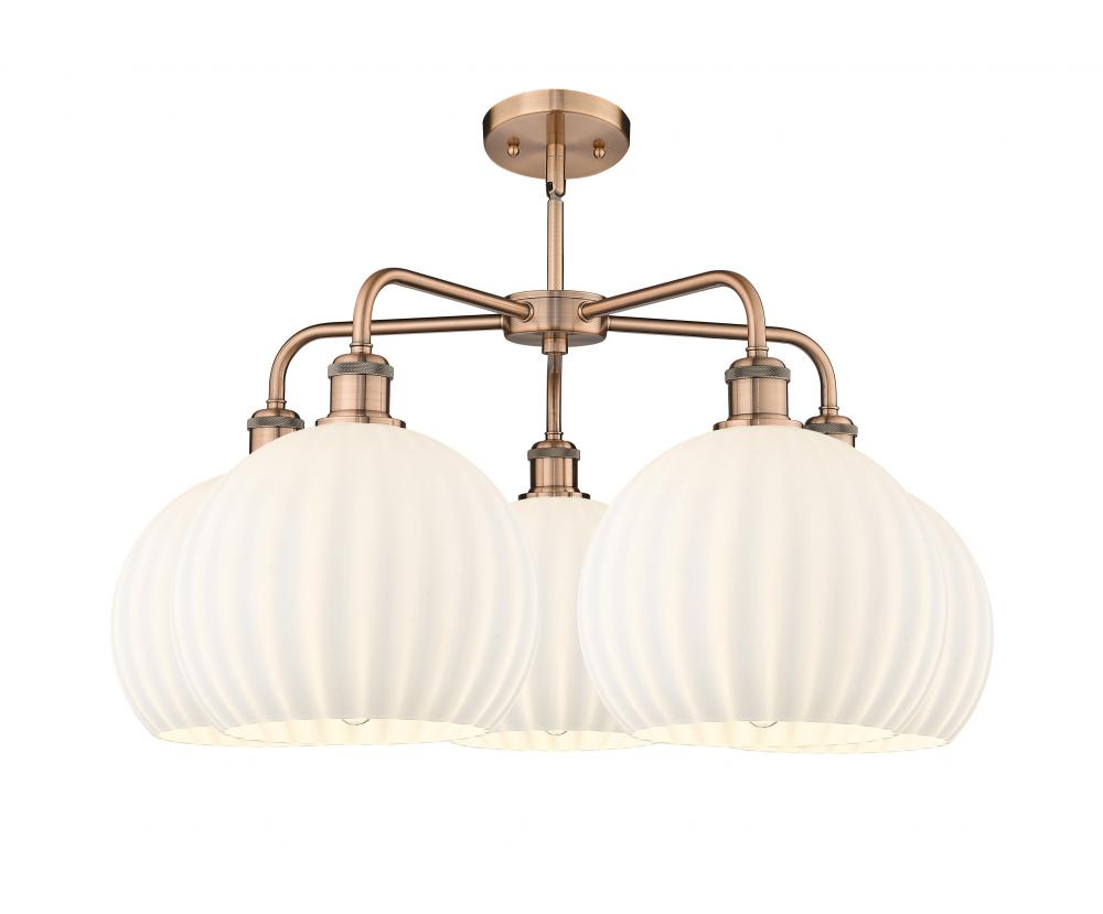 White Venetian - 5 Light - 28 inch - Antique Copper - White Venetian Shade - Chandelier