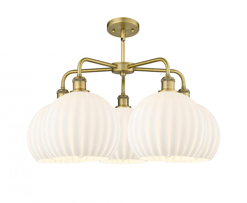 White Venetian - 5 Light - 28 inch - Brushed Brass - White Venetian Shade - Chandelier
