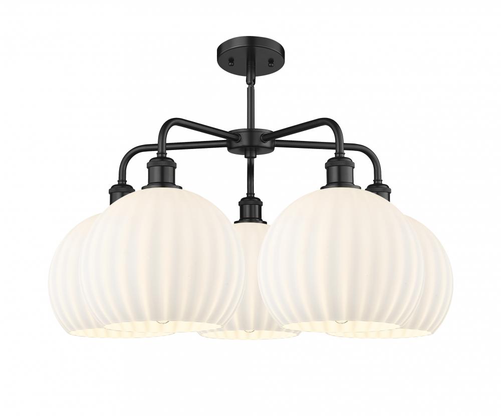 White Venetian - 5 Light - 28 inch - Matte Black - White Venetian Shade - Chandelier