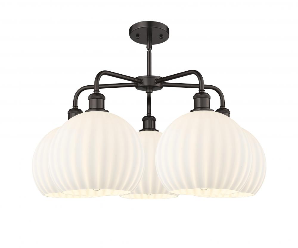 White Venetian - 5 Light - 28 inch - Oil Rubbed Bronze - White Venetian Shade - Chandelier