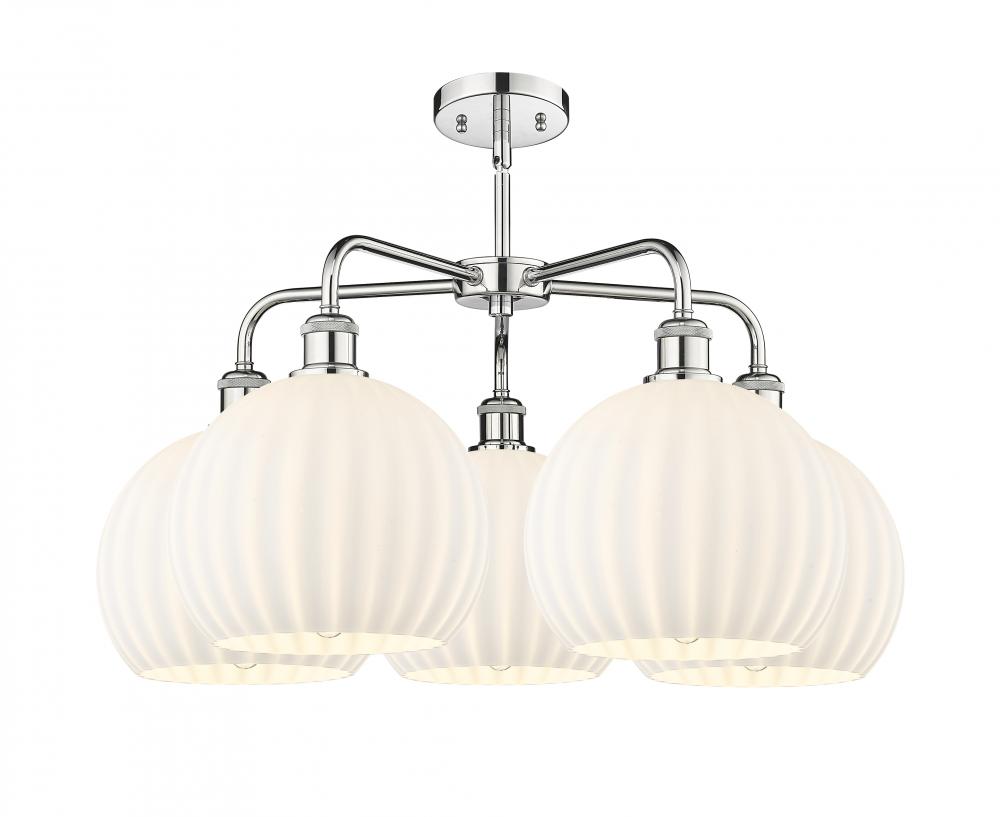 White Venetian - 5 Light - 28 inch - Polished Chrome - White Venetian Shade - Chandelier
