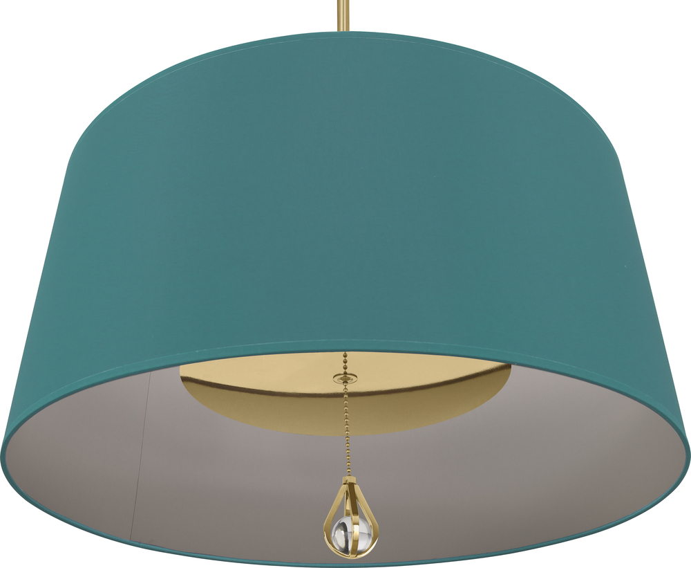 Modern Brass Williamsburg Custis Pendant with Mayo Teal Fabric Shade with Carter Gray Lining