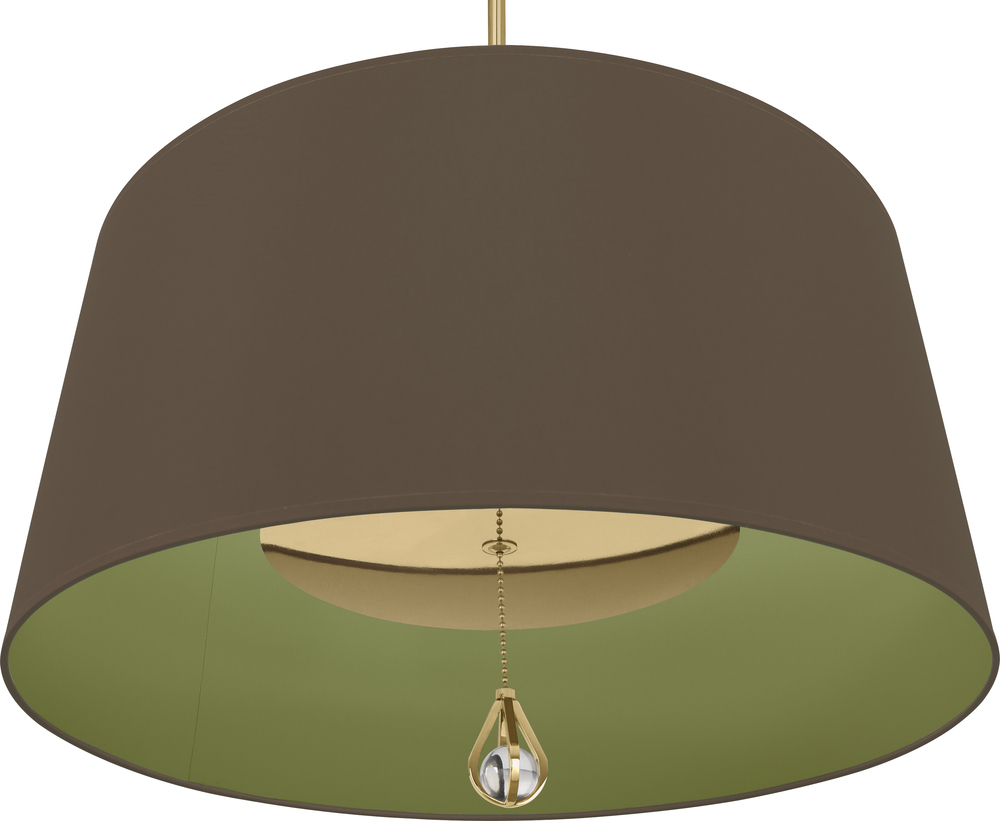Modern Brass Williamsburg Custis Pendant with Revolutionary Storm Fabric Shade with Parrot Green Lining