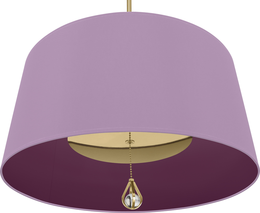 Modern Brass Williamsburg Custis Pendant with Ludwell Lilac Fabric Shade with Greenhow Grape Lining