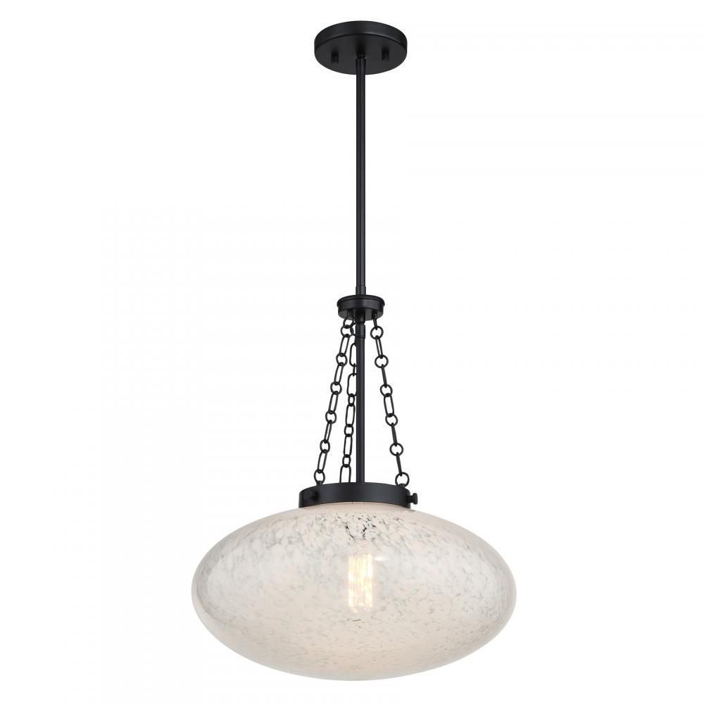 Get a bright and vintage-inspired look with the Savoy House Willow 1-light pendant. It has a mesmerizing, eye-catching oval shade of cloud glass, detailed hanging chain and a Matte Black finish. Willow is 16.5" in width and has an adjustable height ranging from 20.25" to 74.25". Uses one standard size bulb of up to 60 watts. Bulb not included. Comes with four 12" downrods and one 6" downrod.
