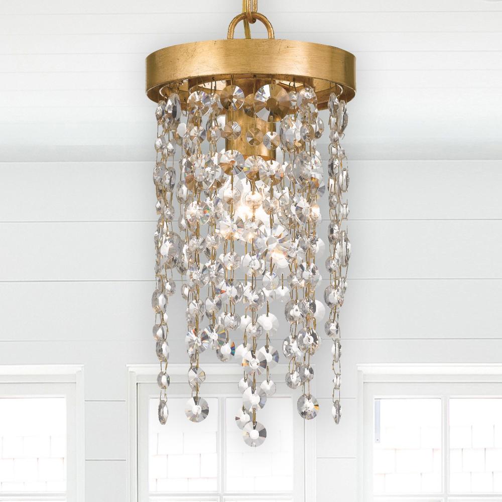 Layers of multi-sized faceted cut crystal strands are arranged on a simple, Black Forged or Antique Gold frame creates optimal sparkle. A perfect complement to any space. The Winham fixture is a sparkling masterpiece when placed as a focal point in a bedroom, dining room or living room.
