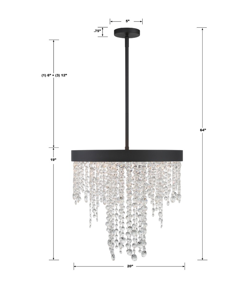 Layers of multi-sized faceted cut crystal strands are arranged on a simple, Black Forged or Antique Gold frame creates optimal sparkle. A perfect complement to any space. The Winham fixture is a sparkling masterpiece when placed as a focal point in a bedroom, dining room or living room.