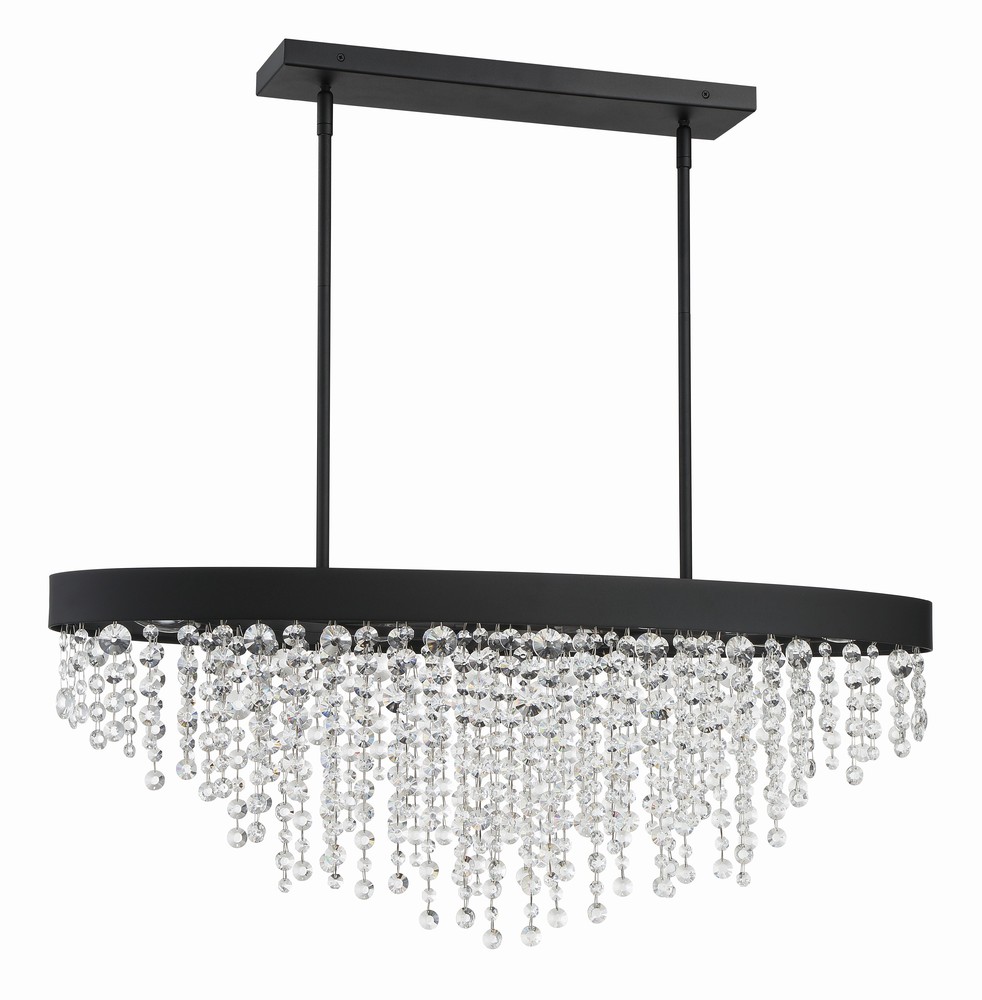 Layers of multi-sized faceted cut crystal strands are arranged on a simple, Black Forged or Antique Gold frame creates optimal sparkle. A perfect complement to any space. The Winham fixture is a sparkling masterpiece when placed as a focal point in a bedroom, dining room or living room.