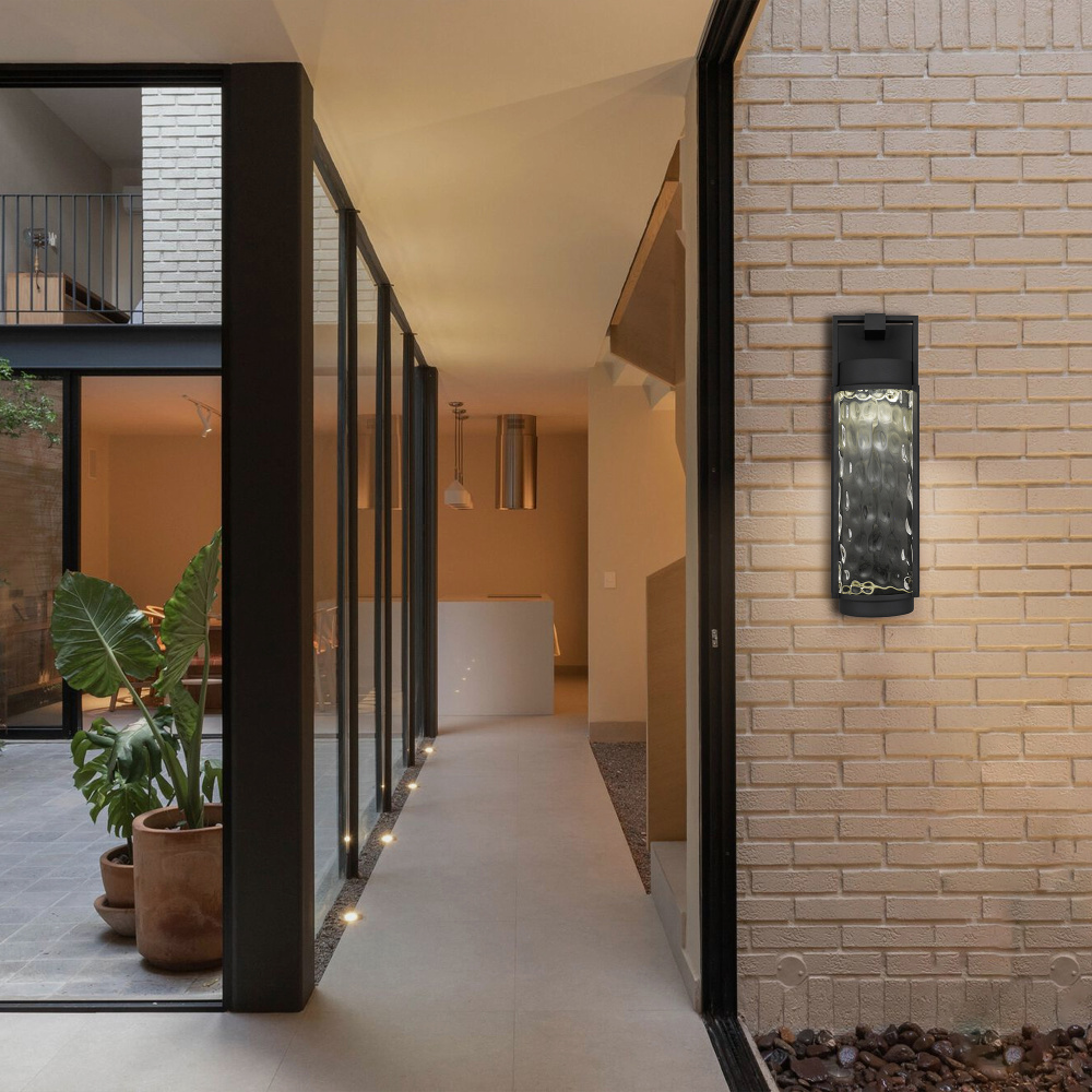 The Winston LED is a classic wall lantern featuring exquisite mouth-blown clear hammered glass, designed to infuse your space with both beauty and radiant light. This elegant fixture not only enhances your home’s aesthetic but also creates a warm, inviting ambiance, making it a perfect choice for illuminating your surroundings. This Sconce is paired up with a 3-CCT control for customizable light color and wet location rated.