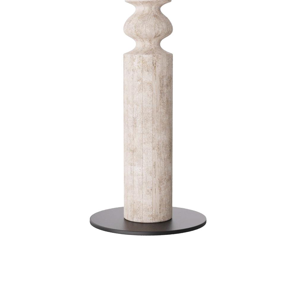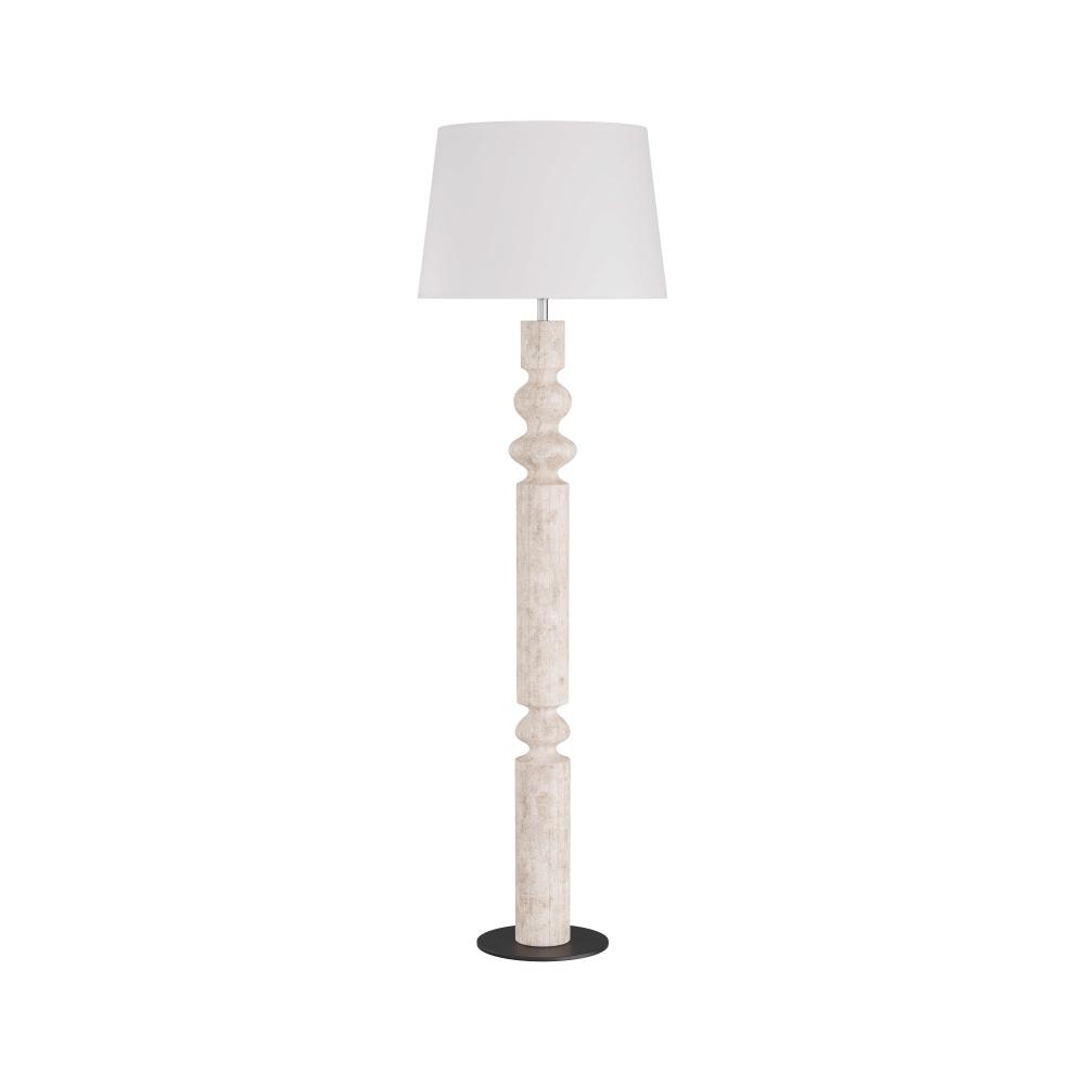 CRAFTED IN A CARVED, TOTEMIC SILHOUETTE, OUR WOODROW FLOOR LAMP BESTOWS ARTISAN CHARACTER TO ANY ROOM. THE PIECE IS CREATED IN TURNED MANGO WOOD WITH A LIME-WASH FINISH, ALLOWING THE NATURAL BEAUTY OF THE WOOD GRAIN TO REMAIN VISIBLE. THE GRACEFUL POST RESTS ON A BLACKENED IRON DISC BASE. A MATCHING WOOD FINIAL AND A TAPERED OFF-WHITE LINEN SHADE, LINED IN OFF-WHITE COTTON, COMPLETE THE LAMP. FINISH WILL VARY.