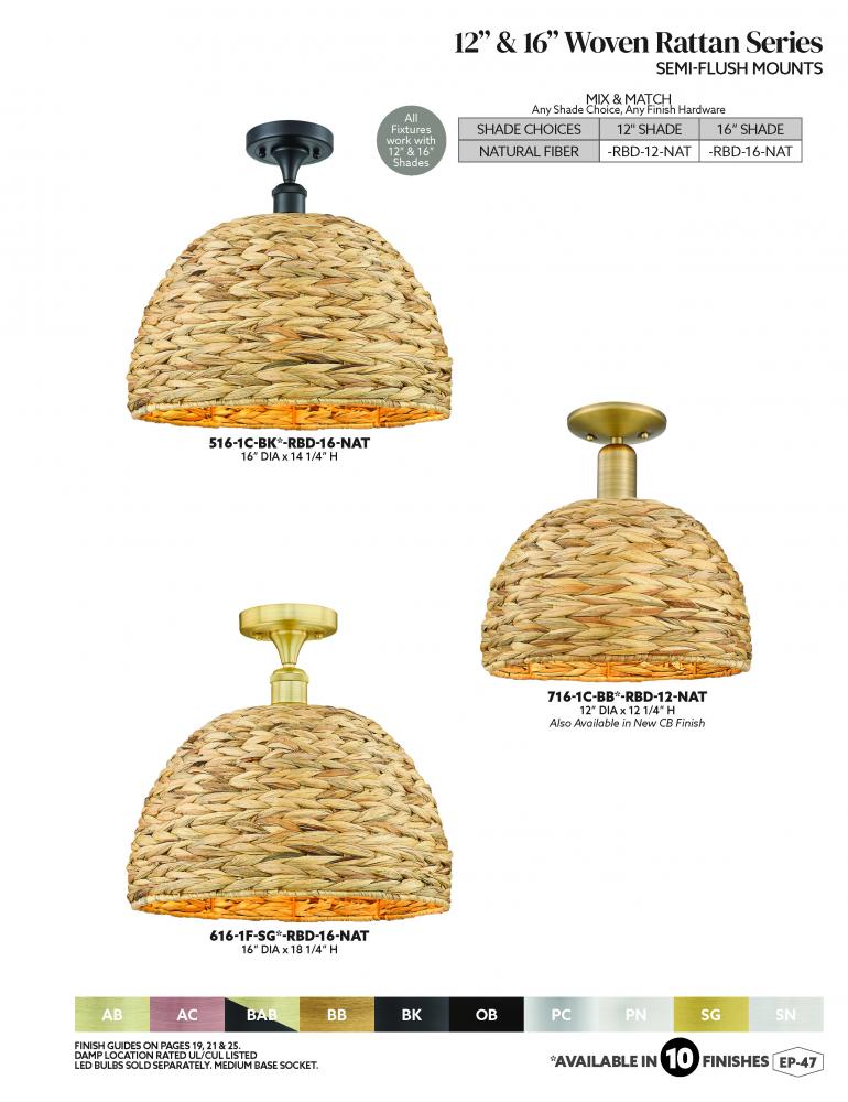 Woven Rattan - 1 Light - 16 inch - Antique Brass - Natural Shade - Semi-Flush Mount