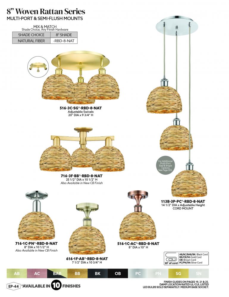 Woven Rattan - 1 Light - 8 inch - Champagne Bronze - Natural shade - Semi-Flush Mount