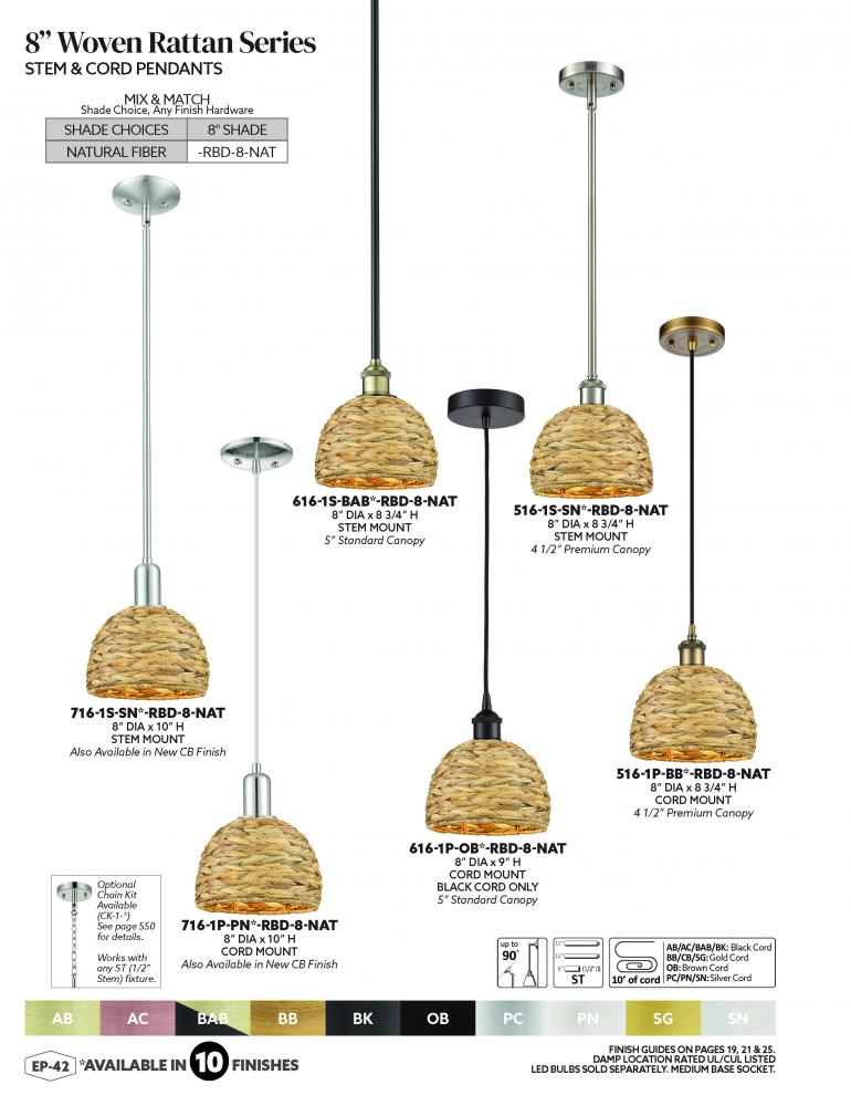 Woven Rattan - 1 Light - 8 inch - Champagne Bronze - Natural shade - Stem hung - Mini Pendant