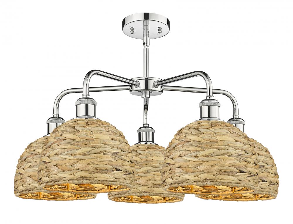 Woven Rattan - 5 Light - 27 inch - Polished Chrome - Natural shade - Stem hung - Chandelier