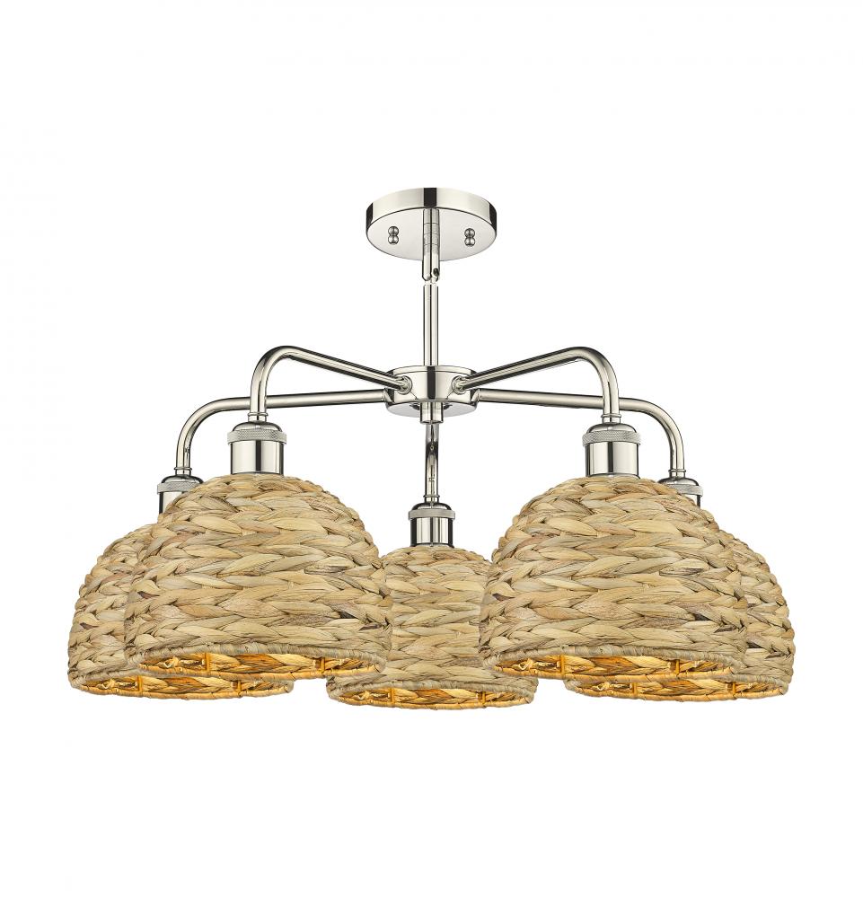 Woven Rattan - 5 Light - 27 inch - Polished Nickel - Stem hung - Chandelier