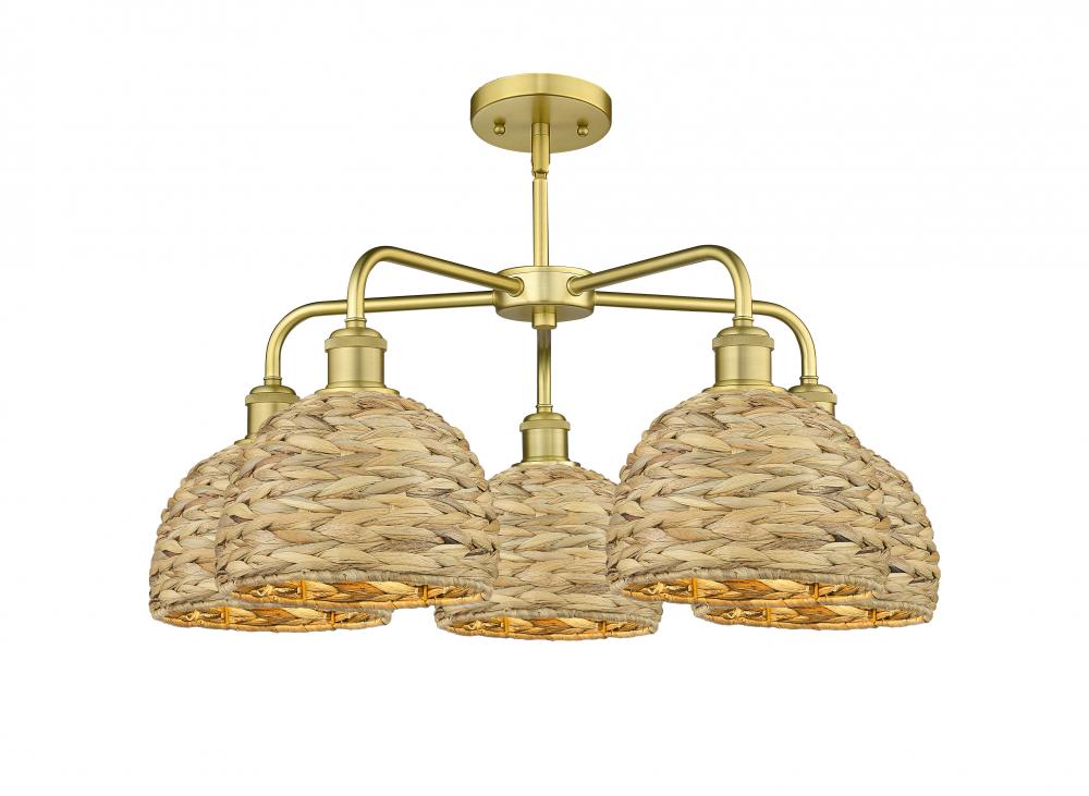 Woven Rattan - 5 Light - 27 inch - Satin Gold - Natural shade - Stem hung - Chandelier