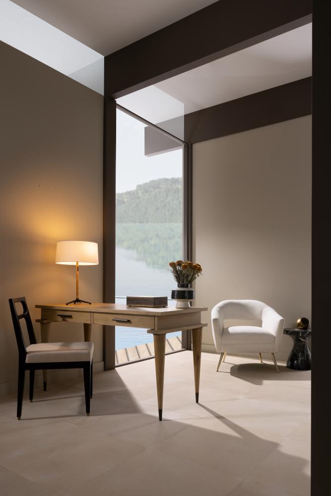 OUR MASTERFULLY CRAFTED WRIGHTMAN DESK SHOWCASES THE BEAUTY OF OYSTER OAK VENEER. BEARING STRIKING LINES, THE WRITING DESK IS DESIGNED WITH A FLOATING, RECESSED DRAWER CASE, WITH TWO PENCIL DRAWERS THAT ARE FINISHED WITH STREAMLINED, LINEAR BRONZE BRASS HARDWARE. THE DESKTOP FEATURES A RADIAL STARBURST PATTERN. SEVERELY TAPERED LEGS WITH BRONZE BRASS SABOTS COMPLETE THE PIECE. FINISH WILL VARY.