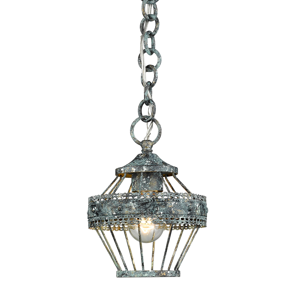 Bring Coastal elegance into your home with the Wry Lighting Ferris 1-light Semi-Flush Mount in Blue Verde Patina. Embrace the nostalgic charm of an antique with this unique piece, featuring a multi-layered finish that replicates the natural verdigris patina of aged bronze. With no shade to limit the illumination, this fixture allows its beautifully crafted surface to shine. The deep blue-green patina contrasts elegantly against the dark metal base, creating a captivating focal point in any room. Perfect for entryways, kitchens, and living rooms with mid-height ceilings, this pendant is damp location rated and can be easily installed on angled ceilings. Its adjustable height ranges from 21.25" to 95.25", fitting seamlessly into any space. Dimensions: 7.5"W x 10.25"H x 7.5"D. Requires 1 E26 Medium base bulb (not included, max 100 watts). Bring a touch of European-inspired character into your home with this artisan-crafted fixture.
