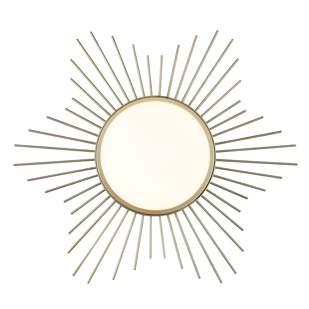Bring transitional elegance into your home with the Wry Lighting Kieran Integrated LED 18in Flush Mount in White Gold. Featuring an opal glass shade and a white gold frame, it creates a welcoming atmosphere. The opal glass shade diffuses light evenly, offering a soft, glare-free glow that enhances the overall ambiance. This timeless and elegant shade ensures a luminous effect while adding a classy touch to your decor. Our White Gold finish features a rustic brushed texture that blends warmth and coolness for a sophisticated look, perfectly complementing any design scheme. Ideal for low ceilings in hallways, closets, laundry areas, and bathrooms, this flush mount is damp location rated, making it suitable for semi-enclosed spaces with occasional moisture. Overall Dimensions: 18.25"W x 2.13"H x 18.25"D. Enjoy outstanding illumination through integrated LED technology, providing 960 rated lumens and a warm glow at 3000K CCT. Elevate your space with this stylish fixture that combines quality with artistic flair.