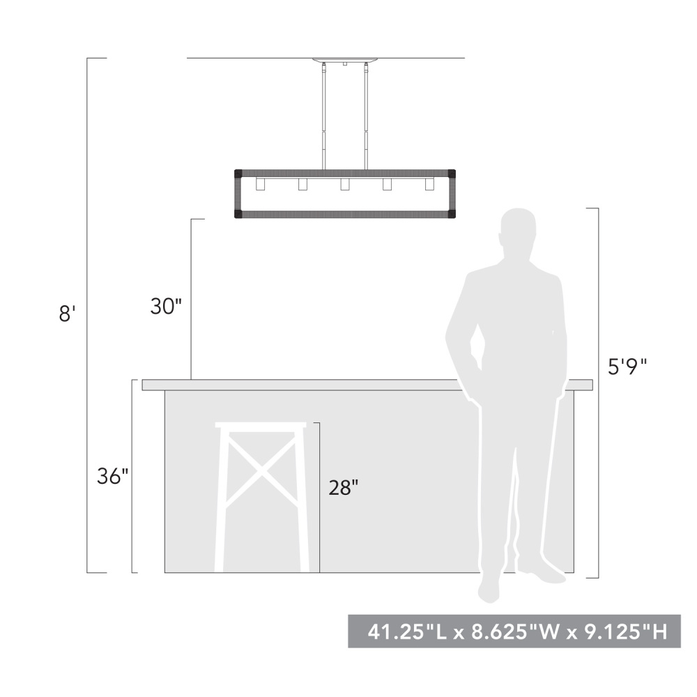 Bring Coastal elegance into your kitchen with the Wry Lighting Kimber 5-light Island Light. Its open-frame design wrapped in natural rattan creates an airy atmosphere, perfect for modern spaces. With no shade, the light shines freely, enhancing the design's organic texture and inviting glow. The Modern Brass finish embodies understated elegance, providing a muted hue that beautifully diffuses the light, making it warm and welcoming. Suitable for indoor spaces not subject to moisture, this fixture is tailored for kitchen islands, delivering both utility and style. It’s sloped-ceiling compatible and features adjustable height options, ranging from 17.5" to 53.5", allowing for a customized installation. Overall dimensions are 41.25"W x 9.13"H x 8.63"D, and it requires 5 E26 Medium base bulbs (not included) with a maximum wattage of 60 per bulb. Enhance your space with this functional yet beautiful light fixture, designed with both quality and lifestyle in mind.