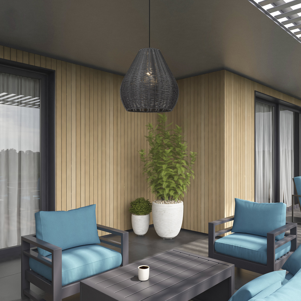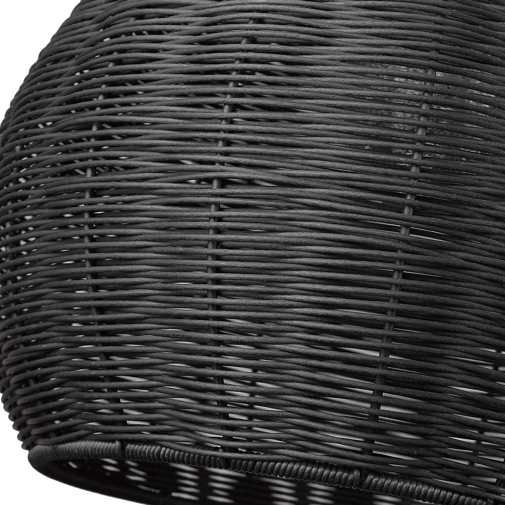 Embrace the relaxed elegance of the Wry Lighting Melany 1-light Outdoor Pendant. Featuring a large, woven wicker shade and a natural black finish, it enhances the beauty of any outdoor space while providing ambient light. The matte black wicker shade creates a sophisticated texture, filtering light softly for a cozy atmosphere. Designed for wet locations, this pendant withstands the elements while complementing your outdoor decor. Versatile and adjustable, this pendant is compatible with sloped ceilings and allows for a customized hanging height from 18.125" to 129.625". With overall dimensions of 17.5"W x 18.13"H x 17.5"D, it requires one E26 medium base bulb with a maximum wattage of 100. Illuminate your covered outdoor areas with the stunning craftsmanship of Wry Lighting, where style meets functionality.