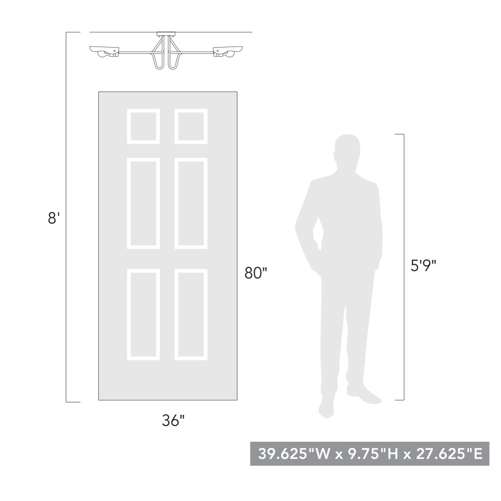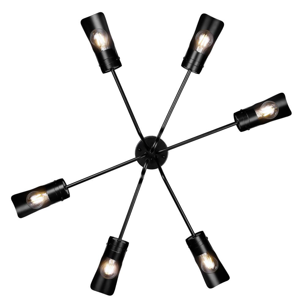 Elevate your home with the Wry Lighting Newton 6-light Semi-Flush Mount. Designed in a modern style, this fixture combines functionality with aesthetic appeal, perfect for blending with any decor. With a no shade design, light radiates beautifully, enhancing your rooms. The smooth matte black finish provides a non-reflective surface, creating a clean and sophisticated look that complements various styles. This fixture is damp location rated, making it suitable for areas with occasional moisture, such as covered porches and kitchens. Its dimensions are 39.63"W x 9.75"H x 27.63"D, and it requires 6 E26 medium base bulbs (not included) with a maximum wattage of 60 per bulb. Bring a stylishly functional charm to your home with this expansive semi-flush mount, designed for low ceilings without sacrificing style.