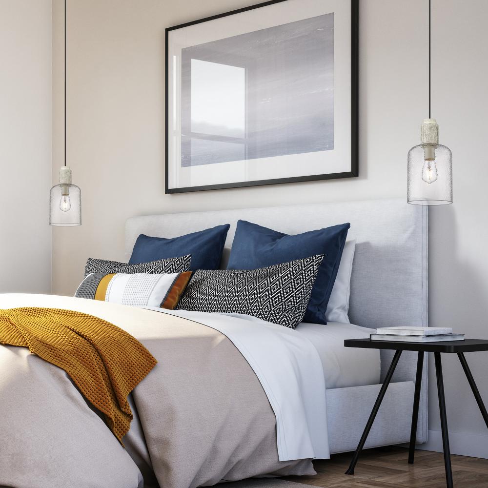 Bring coastal elegance into your home with the Wry Lighting Pedra 1-light Pendant in Matte Black. Featuring a glass shade and a matte black frame, it creates a welcoming atmosphere. The hammered clear glass shade features a stunning, artisanal touch with a dynamic play of light, creating a captivating visual texture. This beautiful shade captures and refracts light, casting a brilliant sparkle onto surrounding surfaces. The matte black finish is timeless and endlessly versatile, offering an understated elegance that complements various decor styles from minimalist to bold contemporary. Perfect for kitchens, dining rooms, or bedrooms—with damp location rating suitable for covered and semi-enclosed spaces. The pendant is also sloped-ceiling compatible with adjustable height from 14.25" to 134.25". Overall dimensions are 6.75"W x 13"H x 6.75"D, and it requires 1 E26 medium base bulb (not included) with a maximum wattage of 100. This charming pendant light adds a touch of rustic elegance and quality to your home, making it ideal for focused illumination.