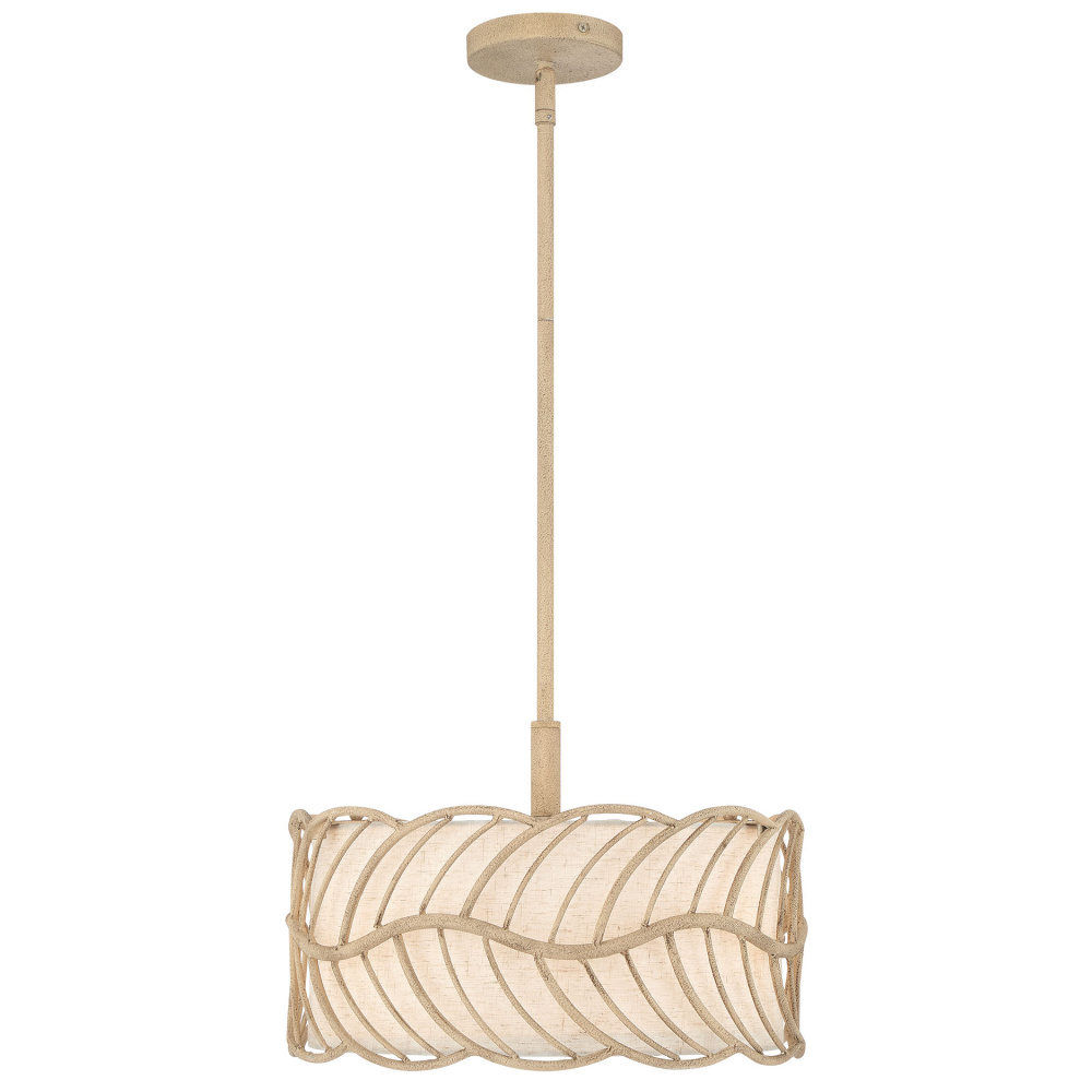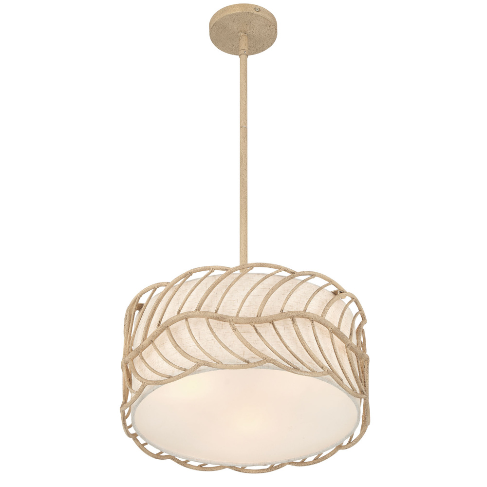Bring nature-inspired elegance into your home with the Wry Lighting Simbolo 3-light Pendant in Almond. Featuring a fabric shade and a soothing Almond frame, it creates a welcoming atmosphere.