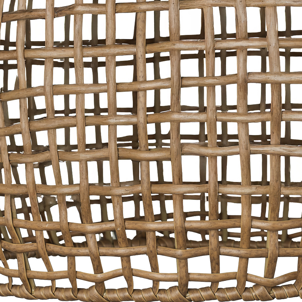 Elevate your space with the natural charm of the Wry Lighting Weavelight 3-light Semi-Flush Mount. Featuring a wicker shade and a Natural Black finish, it creates a welcoming atmosphere. The Maple All-Weather Wicker shade showcases a warm, honey-brown hue with natural variations, meticulously woven to bring an airy, rustic touch to your decor. Its Natural Black finish offers a softer, organic look that pairs wonderfully with various styles, from modern farmhouse to industrial. This fixture is damp location rated, making it ideal for covered patios or laundry rooms, while its elegant design suits entryways, kitchens, and bedrooms with mid-height ceilings. Dimensions: 16"W x 12"H x 16"D. Requires 3 E26 Medium base bulbs (not included), with a maximum wattage of 100 per bulb. Enjoy the blend of style and durability that this exquisite fixture brings to your home.