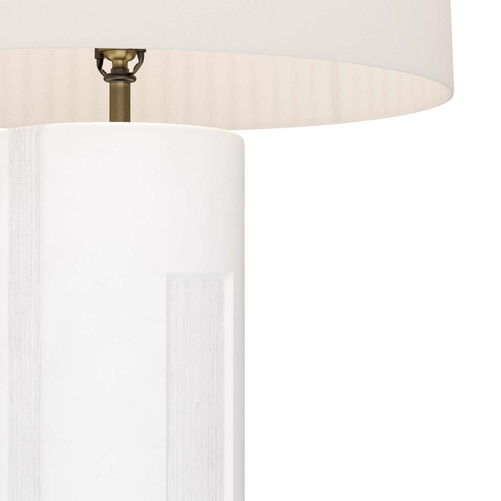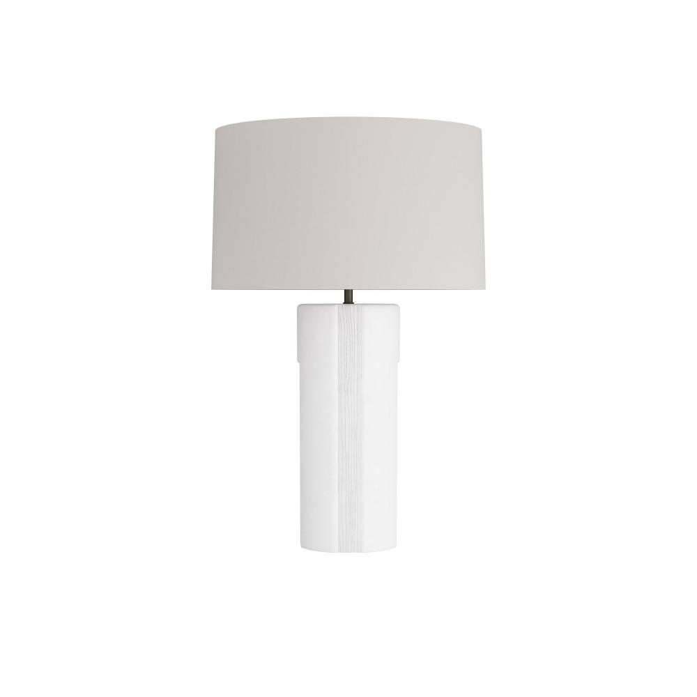 CONSTRUCTED IN MATTE WHITE TERRACOTTA TO RESEMBLE A CONCRETE FINISH, THE WYATT TABLE LAMP STYLES EFFORTLESSLY IN ANY SPACE. THE SOPHISTICATED COLUMN LAMP FEATURES CARVED GEOMETRIC DESIGNS WITH HAND-SCRATCHED RELIEF DETAILING. THE PIECE IS FINISHED WITH A MATCHING TERRACOTTA SPHERE FINIAL AND A WHITE LINEN DRUM SHADE, LINED IN WHITE COTTON. FINISH WILL VARY.