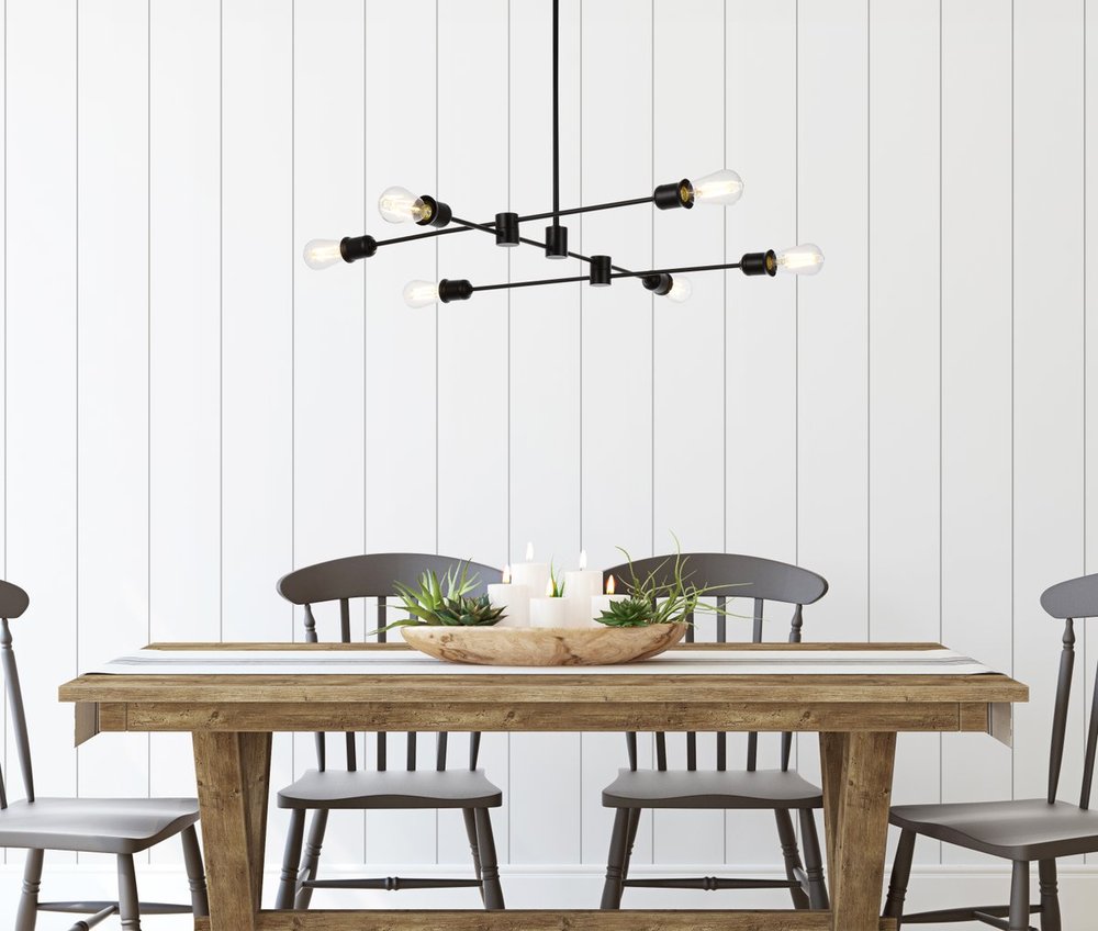 Xavier 6 lights pendant in black is the perfect fixture for over a kitchen island, over a dining table, or use in any room to make a big statement. This pendant elevates the look of any space.