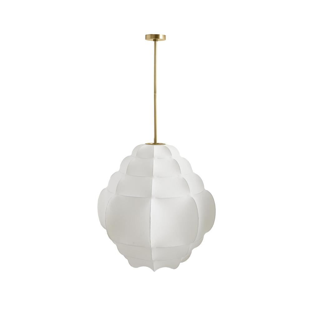 Influences ranging from the natural and modern worlds inform our Yahara. Reminiscent of a bee’s nest or Chinese lantern, this tiered design takes a steel structure finished in antique brass wrapped in a cool cocoon ofivory vegan vellum. Zen-like in its appeal, this fixture will lend a soothing glow to any space. Damp-rated, although limited covered outdoor conditions may affect finish. Finish will vary.