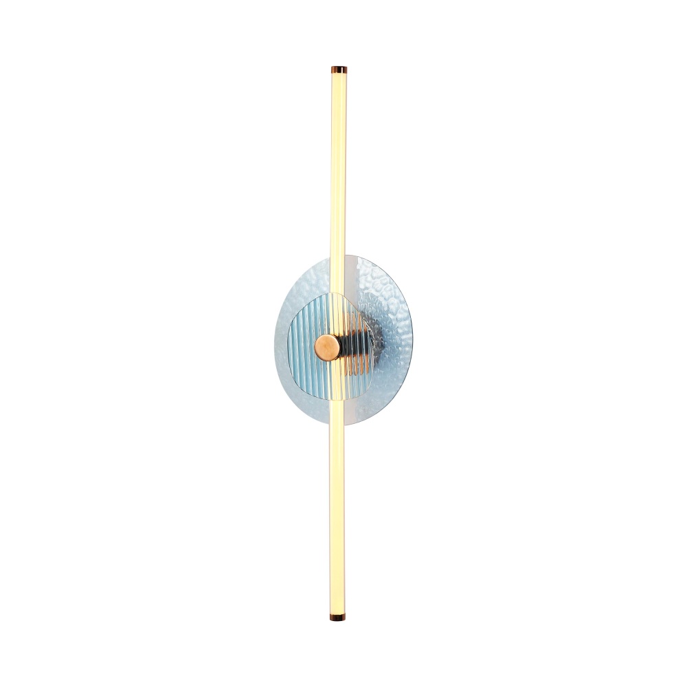 Bring modern elegance into your home with the Yep by Golden Lighting Colorella LED Wall Sconce. Featuring a glass shade and a rose gold frame, it creates a welcoming atmosphere. This sconce boasts a sophisticated hammered blue glass backplate and a reeded blue glass front plate, showcasing textures that beautifully interplay with light, creating a unique ambiance. Chic and luminous, the rose gold finish is the epitome of modern luxury, adding contemporary warmth and high-end style to your space. Perfect for enhancing hallways, stairways, and bathrooms, this damp-location-rated fixture is designed for covered and semi-enclosed spaces with occasional moisture. The sconce measures 12"W x 39.5"H x 5"D and features integrated LED technology, offering brilliant and energy-efficient illumination with 1440 rated lumens and a warm 3000K glow. Close your space with artistry and quality, making every moment a masterpiece.