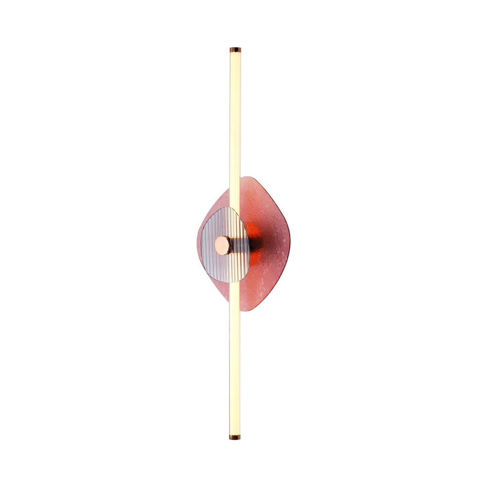 Bring modern elegance into your home with the Yep by Golden Lighting Colorella LED Wall Sconce in Rose Gold with Purple and Blue Glass. Featuring a glass shade, it creates a welcoming atmosphere in any room. The hammered blue glass backplate and reeded blue glass front plate provide texture and sophistication, beautifully catching and dispersing light. The chic Rose Gold finish, created through a durable electroplating process, adds contemporary warmth and luxury. Suitable for covered and semi-enclosed spaces such as bathrooms and covered porches, this sconce enhances hallways, stairways, and bedrooms alike. The wall sconce measures 12"W x 39.5"H x 5"D and boasts integrated LED technology, providing 1440 lumens of warmth at a 3000K color temperature. Make a stylish statement with this high-quality, artisanal fixture that truly stands out.