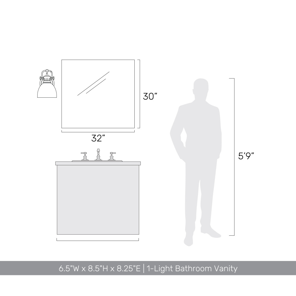 Bring farmhouse elegance into your home with the Yep by Golden Lighting Duncan 1-light Vanity. Featuring a metal shade and a chrome frame, it creates a welcoming atmosphere. The white metal shade provides a smooth, highly reflective surface that enhances light distribution, while the chrome finish offers a timeless appeal and easy-to-clean properties. This versatile fixture is damp location rated, making it suitable for bathrooms and other covered spaces. Installation is a breeze with adjustable directional heads that allow you to highlight specific areas. Overall Dimensions: 6.5"W x 8.5"H x 8.25"D. Requires 1 E26 Medium base bulb (not included), max wattage 100. Perfect for adding both style and practicality to your decor, this fixture embodies quality and charm.
