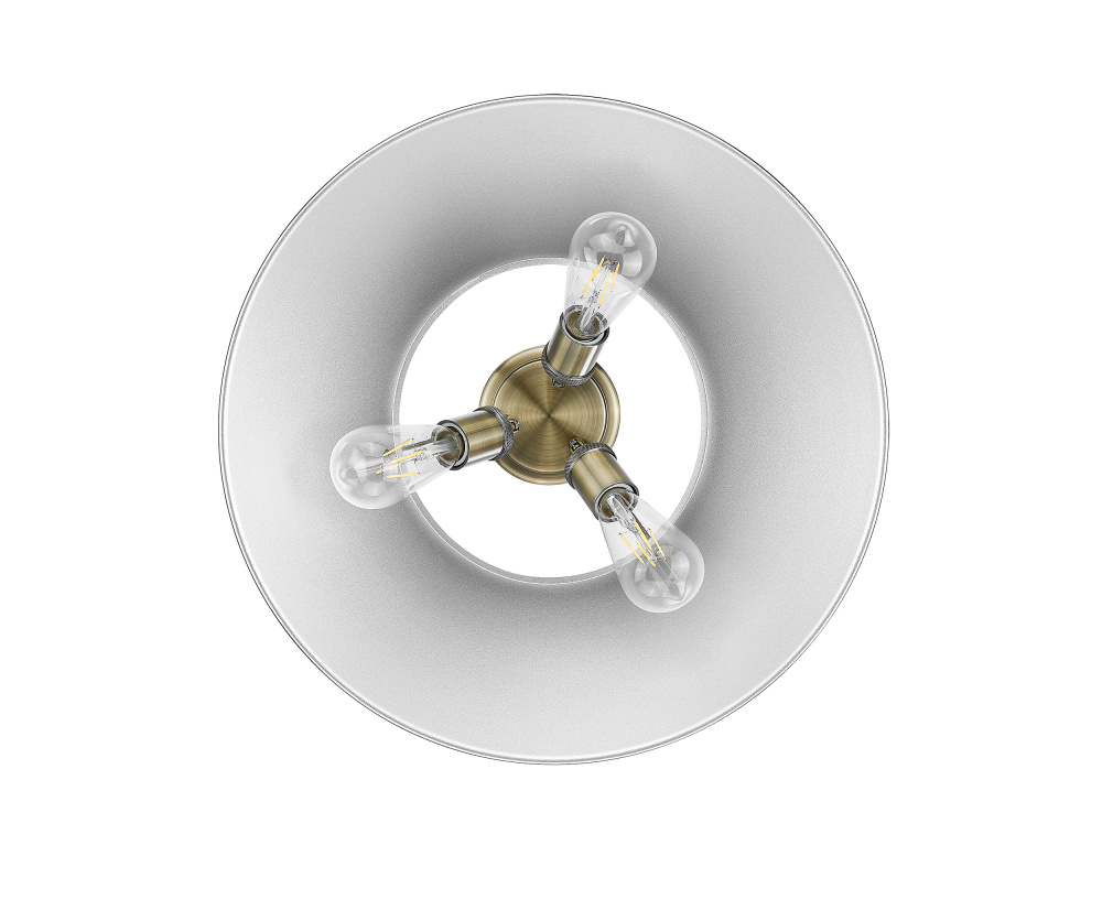 Bring industrial elegance into your home with the Yep by Golden Lighting Orwell 3-light Flush Mount. Featuring a metal shade and an Aged Brass frame, it creates a welcoming atmosphere. The metal shade offers a sleek finish, reflecting a warm, inviting glow, while the classic Chrome details add a bold touch of sophistication. Embrace timeless elegance with a finish that showcases a dynamic surface texture, perfect for adding character to traditional or industrial-inspired spaces.Ideal for low ceilings in hallways, closets, laundry areas, and bathrooms, this fixture is Damp Location Rated, making it suitable for areas with occasional moisture. Requires 3 E26 Medium base bulbs (not included), with a maximum wattage of 60 per bulb. Overall dimensions: 18.75"W x 9.25"H x 18.75"D, it enhances any space with its compact design and wide illumination. Experience the perfect blend of style and function with this stunning piece.
