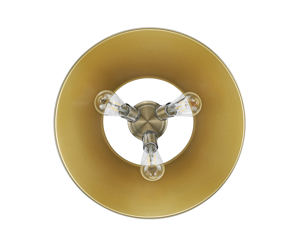 Bring industrial elegance into your home with the Yep by Golden Lighting Orwell 3-light Flush Mount. Featuring a metal shade and an aged brass frame, it creates a welcoming atmosphere. The metal shade showcases an aged brass finish that features a warm gold hue with darker undertones, beautifully catching and diffusing light to enhance your space. This refined finish offers a sense of history and luxurious appeal, created through a durable electroplating process and finely-spun circular brushing. The finish adds visual depth and character, making it an excellent choice for various decor styles. Ideal for low ceilings in hallways, closets, and bathrooms, this flush mount is damp location rated, suitable for spaces with occasional moisture. It requires 3 E26 Medium base bulbs (not included) with a maximum wattage of 60, and its dimensions are 18.75"W x 9.25"H x 18.75"D, ensuring broad illumination for your areas. Elevate your decor with this stylish fixture that seamlessly blends function with beauty, illuminating your home with Chef-Quality craftsmanship.