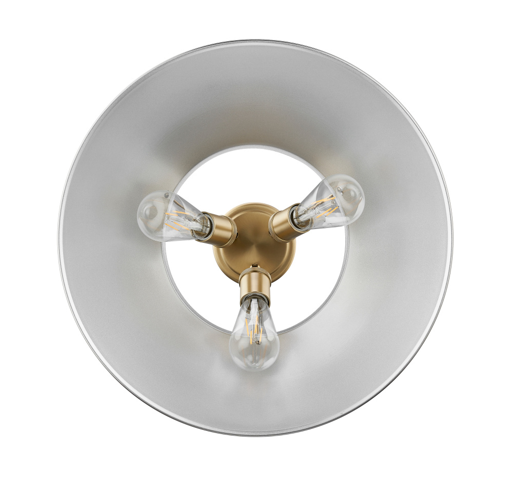 Bring industrial elegance into your home with the Yep by Golden Lighting Orwell 3-light Flush Mount. Featuring a metal shade and a brushed champagne brass frame, it creates a welcoming atmosphere. The metal shade showcases a pewter finish with a fine brushed texture, offering a soft, non-glare glow that enhances any space. The brushed champagne brass finish adds modern sophistication with its understated and elegant appeal. Ideal for low ceilings in hallways, closets, laundry areas, and bathrooms, the fixture is damp location rated, making it suitable for covered and semi-enclosed spaces with occasional moisture. Installation is a breeze, and the fixture requires three E26 Medium base bulbs (not included) with a maximum wattage of 60 each. Overall dimensions are 18.75"W x 9.25"H x 18.75"D, offering compact design that meets wide illumination needs. Experience the perfect blend of timeless style and modern functionality with this quality flush mount, designed to highlight your decor with ease.