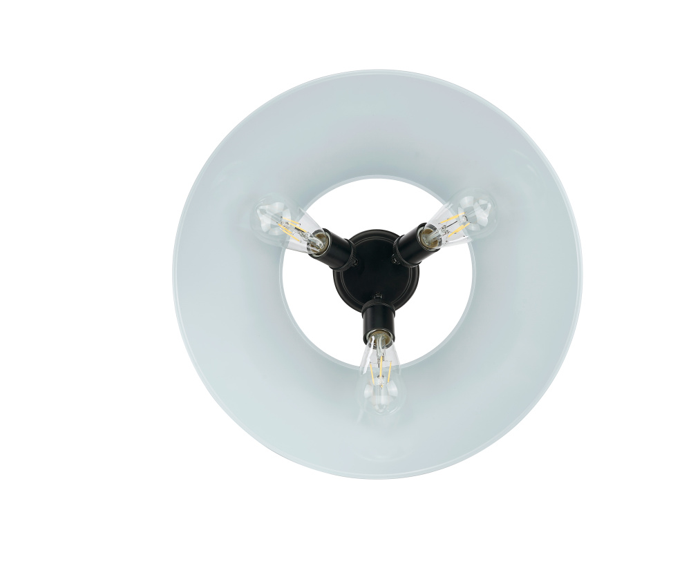 Bring industrial elegance into your home with the Yep by Golden Lighting Orwell 3-light Flush Mount. Featuring a metal shade in Dusky Blue and a Matte Black frame, it creates a welcoming atmosphere. The dusky blue shade offers a serene touch of color with its high-gloss sheen, reminiscent of vintage enamelware. This finish enhances the fixture's clean lines, providing a calming presence in any space. The Matte Black finish epitomizes clean, modern style, complemented beautifully by the dusky blue shade, elevating your decor. Ideal for low ceilings in hallways, closets, laundry areas, and bathrooms, this fixture is Damp Location Rated, suitable for spaces with occasional moisture. Requires three E26 Medium base bulbs (not included) with a maximum wattage of 60 per bulb. Overall dimensions are 18.75"W x 9.25"H x 18.75"D. Elevate your space with this stylish and functional lighting solution, designed for quality and aesthetic appeal.