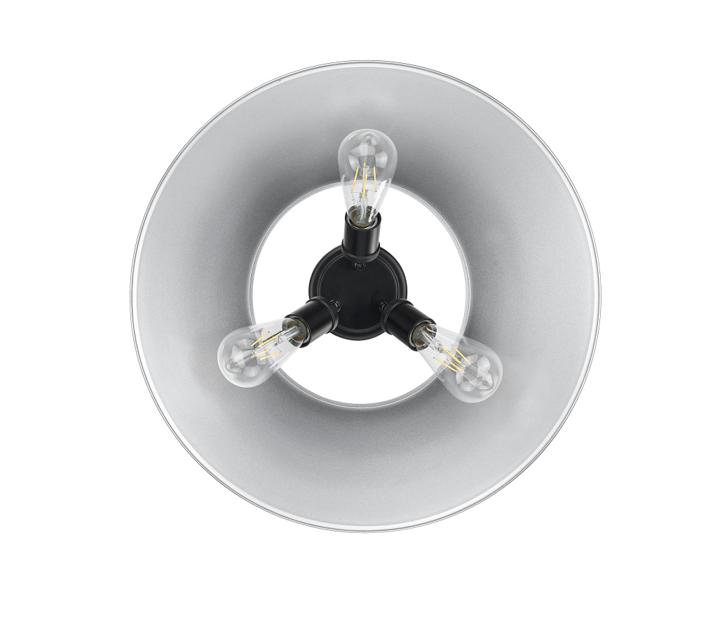 Bring industrial elegance into your home with the Yep by Golden Lighting Orwell 3-light Flush Mount. Featuring a metal shade and a matte black frame, it creates a welcoming atmosphere. The pewter metal shade diffuses light beautifully with its warm silver-grey hue, offering a soft and classic touch to your space. The matte black finish epitomizes clean, modern style, providing a timeless and smooth aesthetic that complements various decor styles, from minimalist to contemporary. This fixture is ideal for low ceilings in hallways, closets, laundry areas, and bathrooms, enhancing damp-rated environments with its versatility. Installation is straightforward, accommodating covered and semi-enclosed spaces with occasional moisture. Overall dimensions measure 18.75"W x 9.25"H x 18.75"D, and it requires three E26 medium base bulbs (not included), with a maximum wattage of 60 per bulb. Elevate your space with statement lighting that blends quality and style.