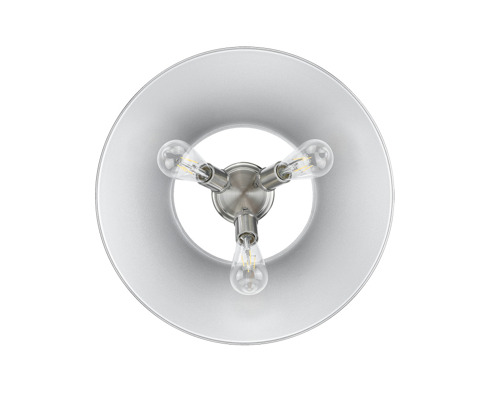 Introduce industrial styling into your home with the Yep by Golden Lighting Orwell 3-light Flush Mount. Featuring a metal shade and a pewter frame, it offers bright illumination. The polished chrome shade enhances its modern appeal with a highly reflective surface that illuminates beautifully. Our Pewter finish conveys a soft and classic touch, adding sophistication to any room. Ideal for low ceilings in hallways, closets, laundry areas, and bathrooms, this fixture is rated for damp locations, ensuring reliable performance in various settings. The overall dimensions are 18.75"W x 9.25"H x 18.75"D, and it requires 3 E26 Medium base bulbs (not included), with a maximum wattage of 60 per bulb. Enhance your decor with a quality fixture that combines function and modern elegance.