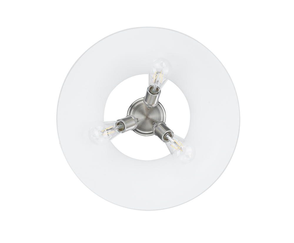 Bring industrial elegance into your home with the Yep by Golden Lighting Orwell 3-light Flush Mount. Featuring an Opal Glass shade and a Pewter frame, it creates a welcoming atmosphere. The Opal Glass shade offers a milky, translucent white color with a satin-matte finish, designed to diffuse light evenly for a soft, glare-free glow. Our Pewter finish offers a soft and classic alternative to brighter silver tones, created through a durable electroplating process that gives the surface a satin luster for an elegant, non-glare glow. Ideal for low ceilings in hallways, laundry areas, and bathrooms, this fixture is Damp Location Rated, making it suitable for covered and semi-enclosed spaces with occasional moisture. Requires three E26 Medium base bulbs (not included) with a maximum wattage of 60 per bulb. Overall dimensions are 18.75"W x 9.25"H x 18.75"D. The perfect choice for those looking to add a touch of timeless sophistication to their interiors while blending style with quality.