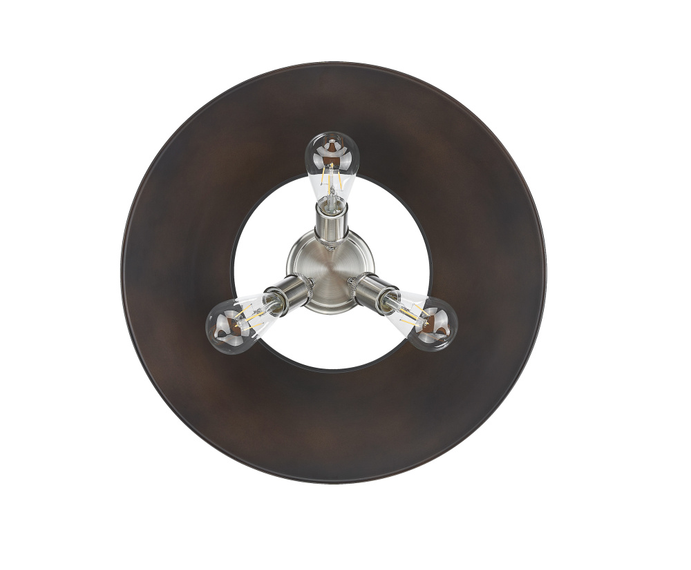 Bring industrial elegance into your home with the Yep by Golden Lighting Orwell 3-light Flush Mount. Featuring a metal shade and a pewter frame, it creates a welcoming atmosphere. This metal shade offers a sophisticated and durable finish, while the Rubbed Bronze accents add a touch of classic warmth, beautifully diffusing light for an elegant glow. Our pewter finish provides a timeless appeal, striking a balance between modern and traditional aesthetics. Ideal for low ceilings in hallways, closets, and laundry areas, it is damp location rated, making it suitable for spaces with occasional moisture. It requires three E26 medium base bulbs (not included) with a maximum wattage of 60 watts each. Overall dimensions are 18.75"W x 9.25"H x 18.75"D. Bring style and function to your home with this versatile fixture from Yep by Golden Lighting.