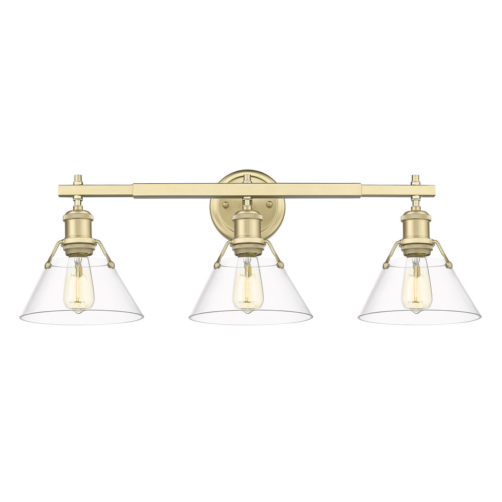 Embrace industrial elegance with the Yep by Golden Lighting Orwell 3-light Vanity. Featuring a clear glass shade and a Brushed Champagne Brass frame, it creates a welcoming atmosphere.