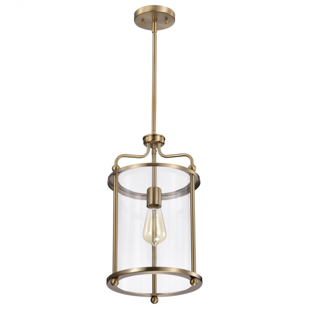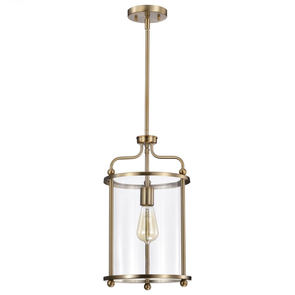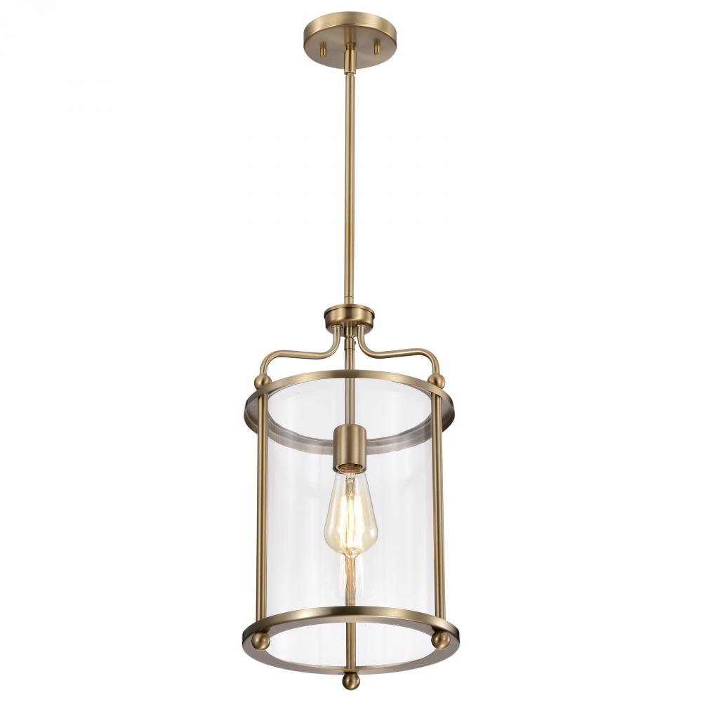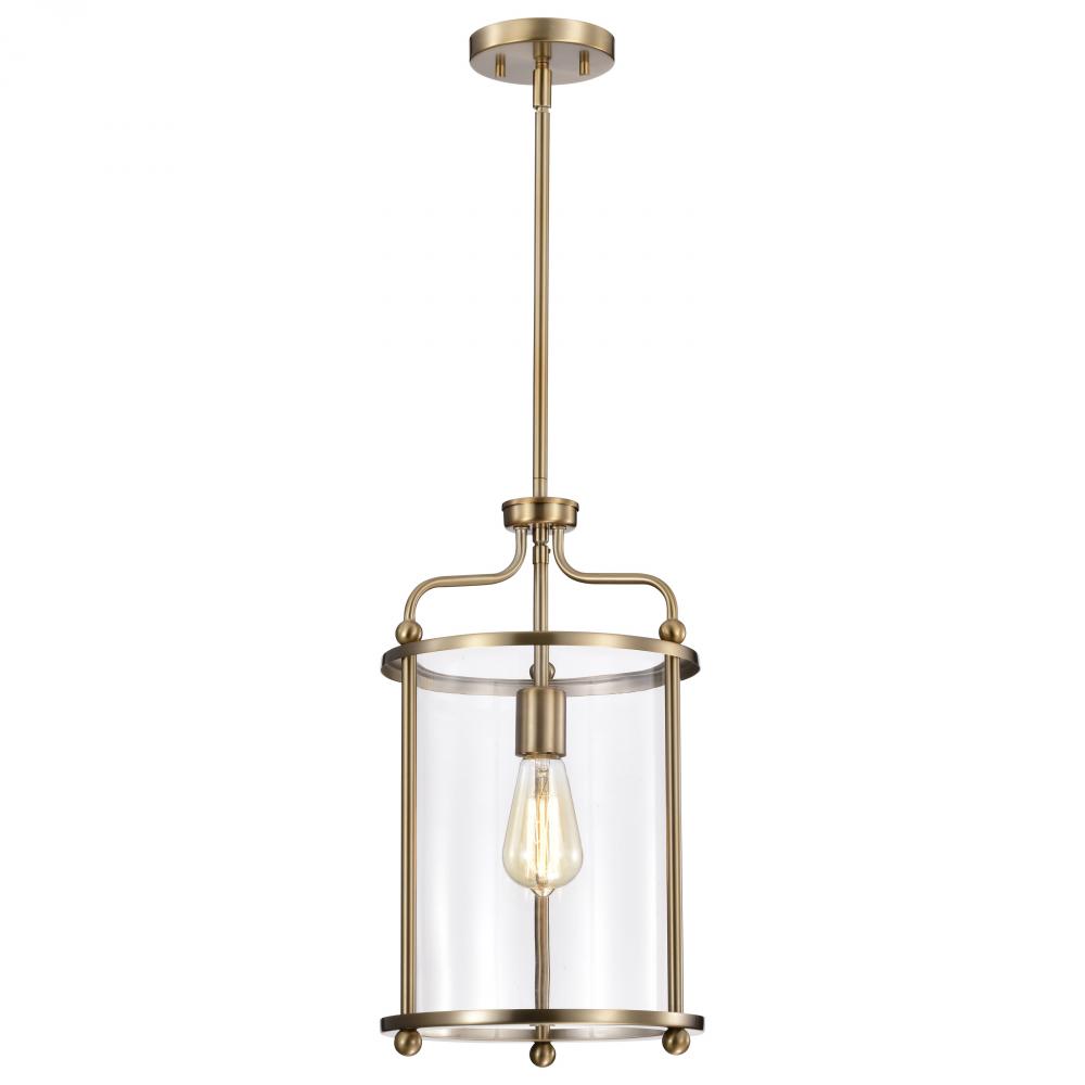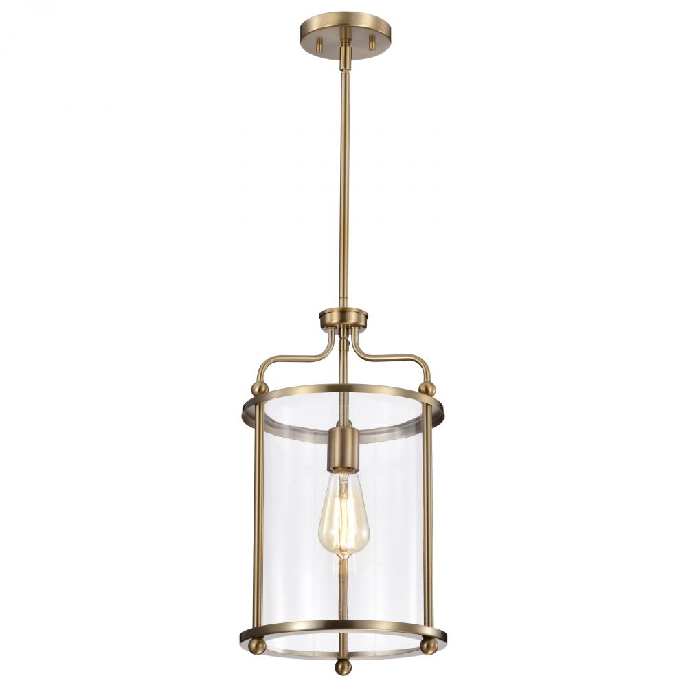 Yorktown 1 Light Pendant; Burnished Brass Finish; Clear Glass