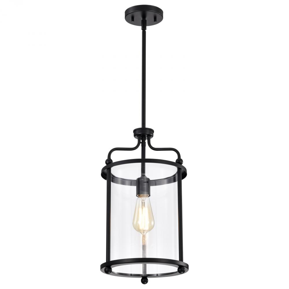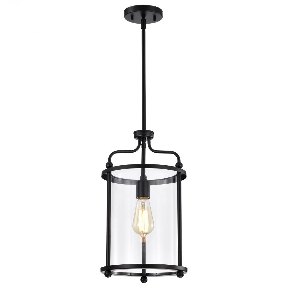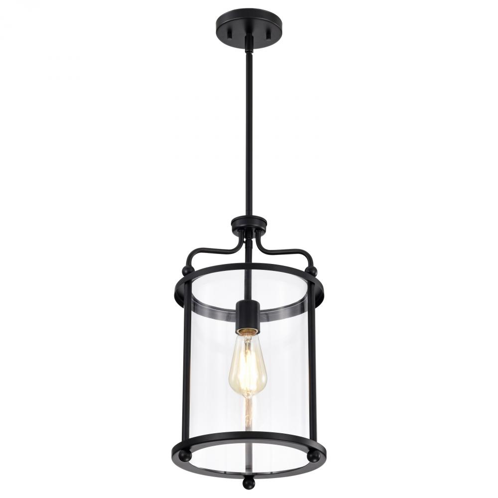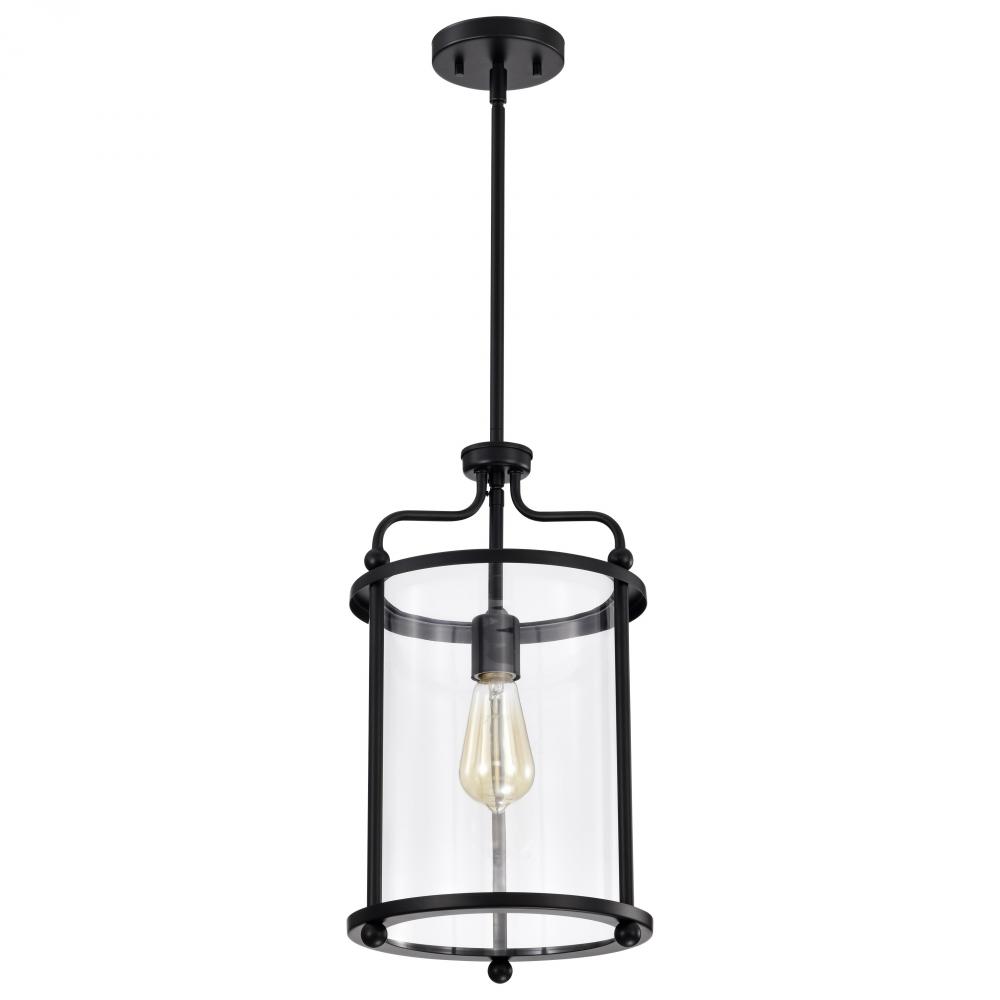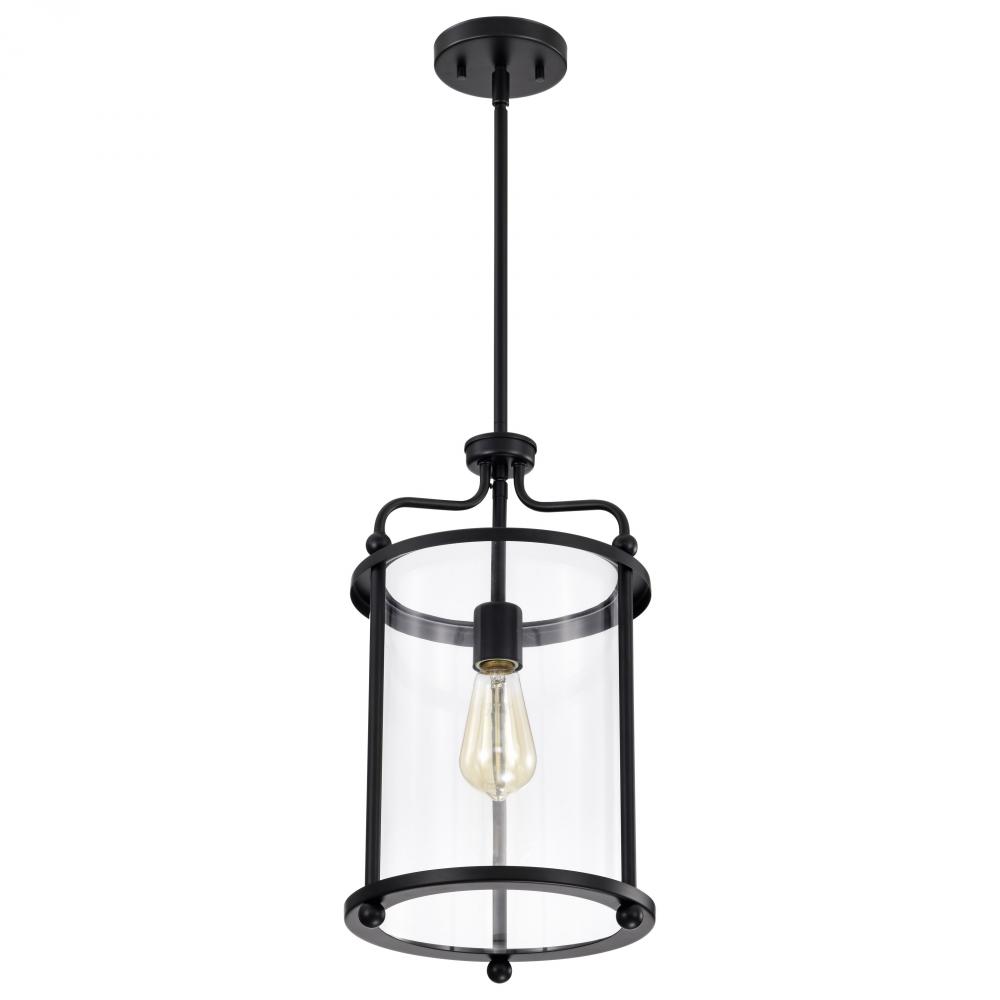 Yorktown 1 Light Pendant; Matte Black Finish; Clear Glass