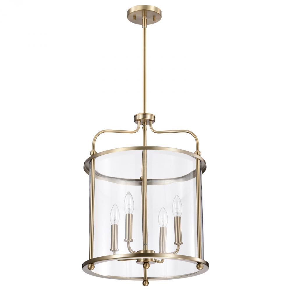 Yorktown 4 Light Pendant; Burnished Brass Finish; Clear Glass