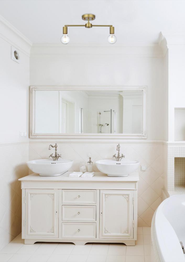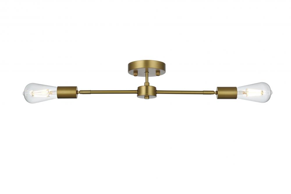 The Zane Collections flush mount light is functional, yet stunningly simple. The fixture has a linear shape and it is versatile which allows itself to blend into any room, while maintaining their bright personality. Available in a satin gold, black, chrome, or brass finish let this light illuminate your life. This product is dimmable and requires two E26 lamps. Light bulbs not included.
